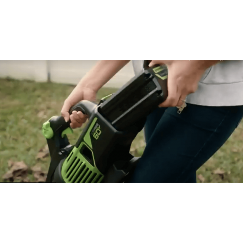 Воздуходув работает от аккумуляторной батареи 60V, которую можно использовать с другими устройствами линейки 60V.